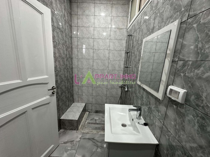 Ce rdc de villa se situe à Ezzahra Lycée. Il se compose d'un salon, deux chambres à coucher partageant une salle d'eau avec douche et une cuisine avec accès à une terrasse.