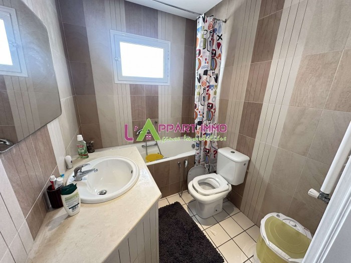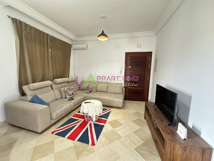 Cet appartement se situe dans une résidence gardée et propre. Il se compose d'un salon, une chambre à coucher avec un balcon. Quant à la cuisine elle est ouverte sur le salon et elle est équipée et aménagée avec des éléments de rangements, plaque, hotte et four et une salle de bain. Il est équipé par un chauffage central et un climatiseur. Une place de parking est disponible.