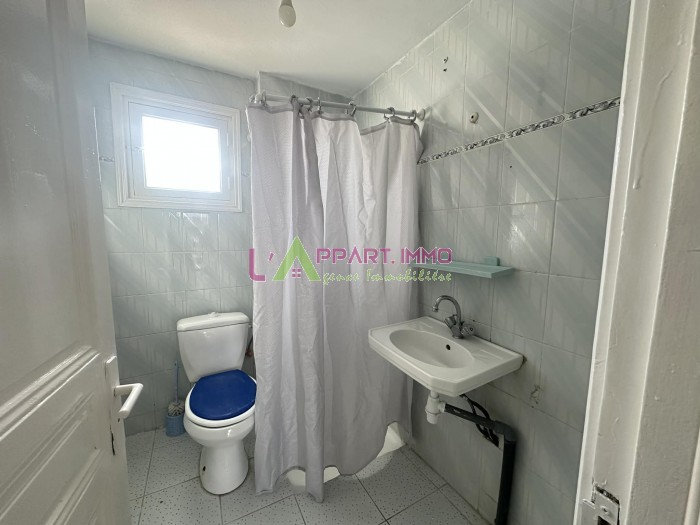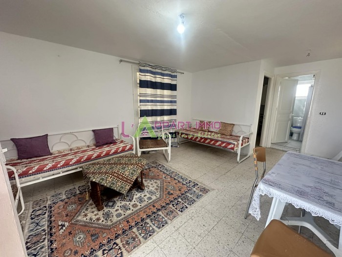 Ce studio meublé se situe dans un quartier calme et propre à Hammam Chatt coté plage. Il se compose d'un salon, deux chambres à coucher, une cuisine et une salle d'eau avec douche. Une grande terrasse est disponible.