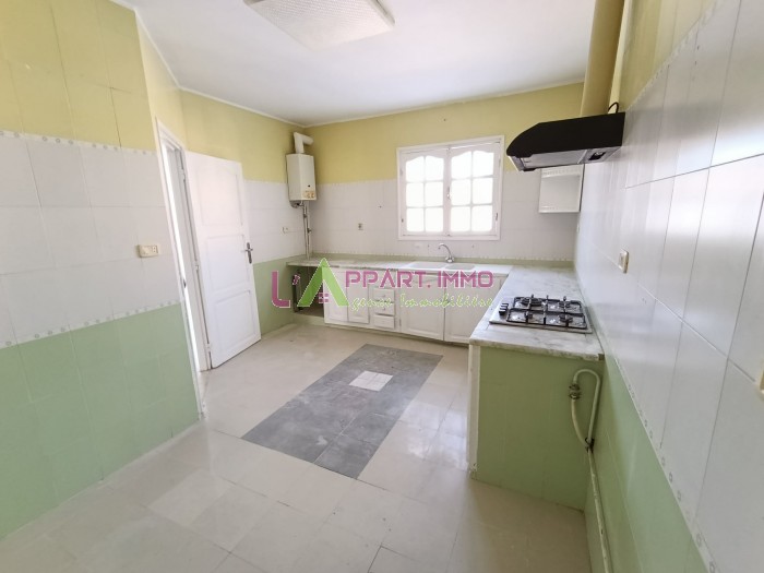 Cet étage de villa se situe dans un quartier calme à Rades plage. Il se compose d'un salon, quatre chambres à coucher dont une avec placard patageant une salle d'eau avec douche. Une cuisine aménagée et équipée par plaque, hotte et une salle d'eau pour les invités est disponible. Il est équipé par un chauffage central et un climatiseur. Une grande terrasse est disponible.