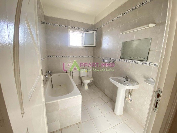 Cet appartement se situe dans une résidence sécurisée et gardée à Mourouj 6. Il se compose d'un salon avec un balcon, deux chambres à coucher dont une avec placard partageant une salle de bain et une cuisine aménagée avec accès à un séchoir. Une place de parking est disponible.