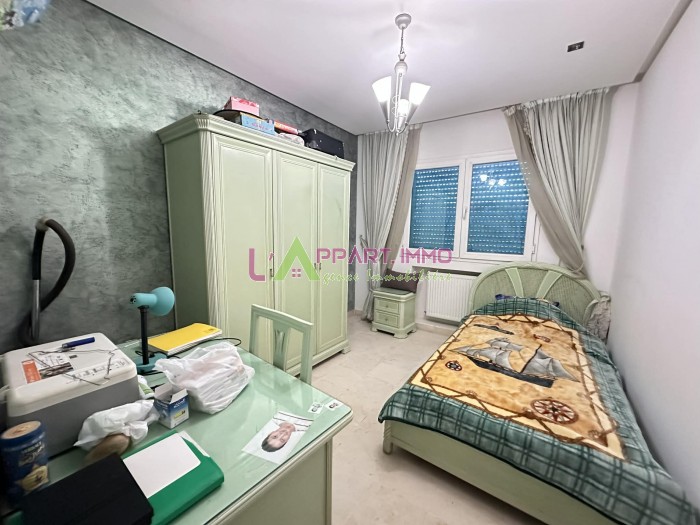 Cet appartement se situe dans une résidence gardée et propre à Boumhel. Il se compose d'un grand salon avec un balcon, une cuisine aménagée et équipée par plaque, hotte et four avec accès à un séchoir. Une salle d’eau pour les invités est disponible. Quant au compartiment nuit, il abrite trois chambres à coucher partageant une salle de bain. Il est équipé par chauffage central. Une place de parking sous-sol est disponible.