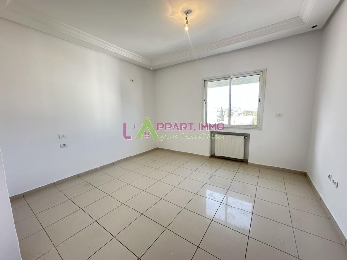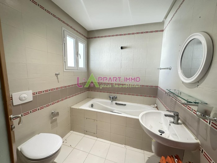 Cet appartement se situe dans une résidence gardée à Rades plage. Il se compose d'un salon avec un balcon, deux chambres à coucher dont une avec dressing partageant une salle de bain. Une cuisine aménagée avec accès à un séchoir. Il est équipé par un chauffage central et un climatiseur. Deux abris de voitures sont disponibles.