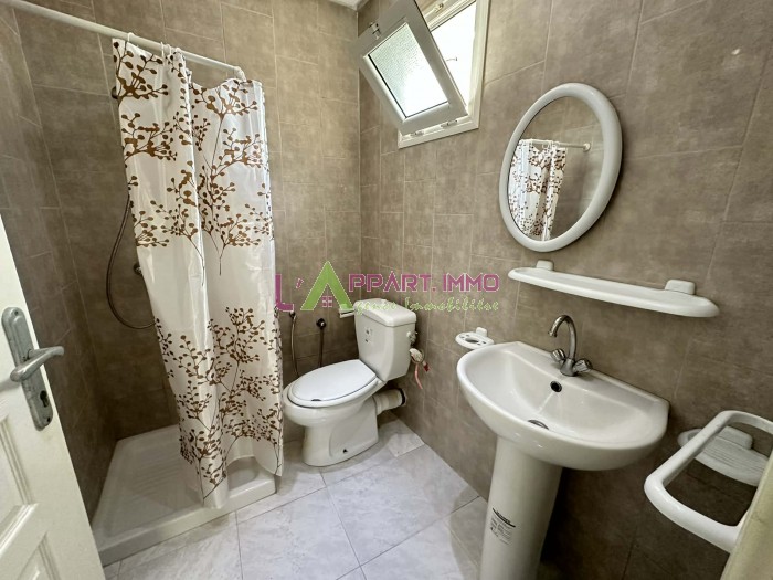 Cet étage de villa avec une entrée indépendante se situe dans un quartier calme et propre à Rades Melienne 1 coté la gare. Il se compose d'un salon, une chambre à coucher avec dressing, une salle d'eau avec douche et une cuisine avec accès à un séchoir Il est équipé par un chauffage central.