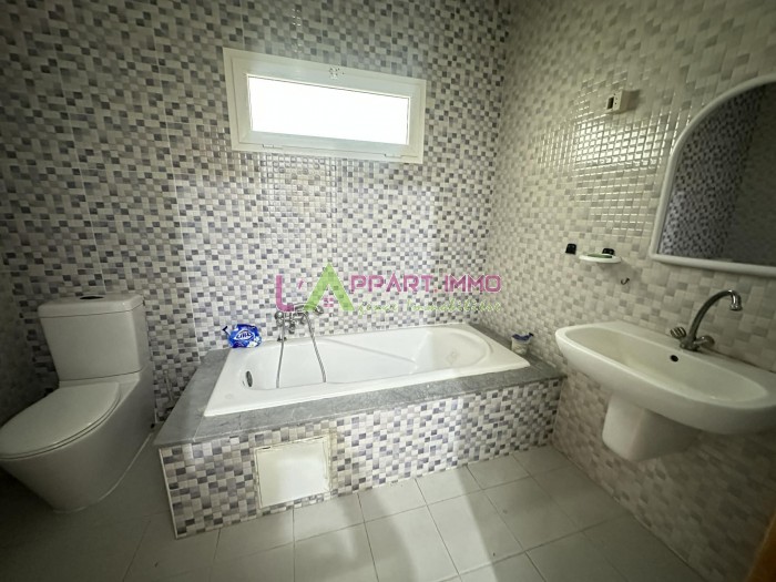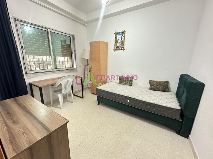 Cet appartement meublé se situe au 1er étage à Borj Cedria coté technopole dans un immeuble privé gardée et propre. Il se compose d'un salon, deux chambres à coucher partageant une salle de bain et une cuisine équipée et aménagée. Une place de parking est disponible.