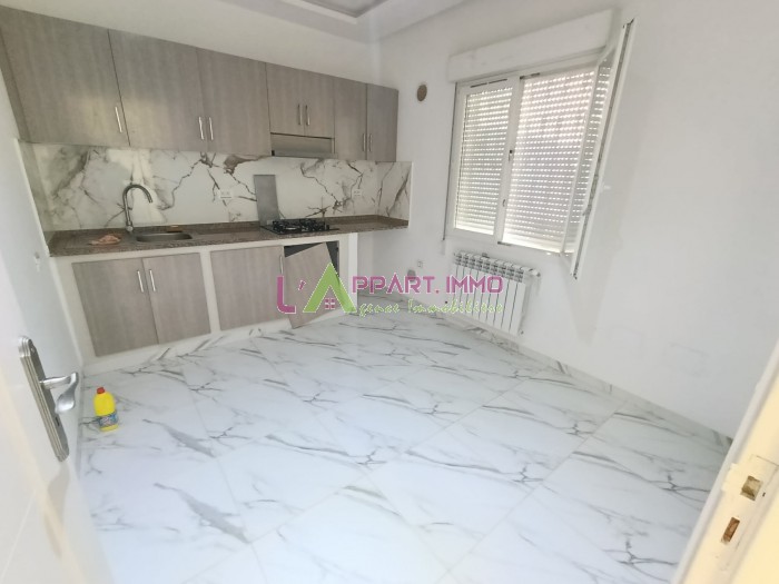 Cet étage de villa se situe dans un quartier calme à Hammam Chatt coté la gare. Il se compose d'un salon avec accès à une terrasse, deux chambres à coucher partageant une salle d'eau avec douche et une cuisine aménagée et équipée par plaque. Il est équipé par un chauffage central.