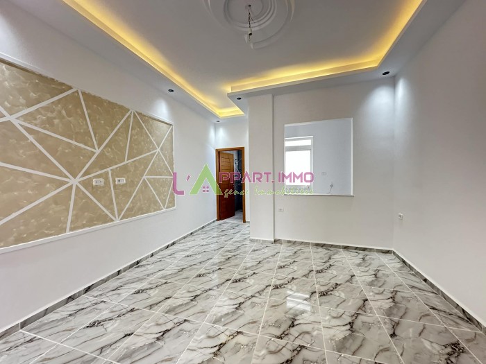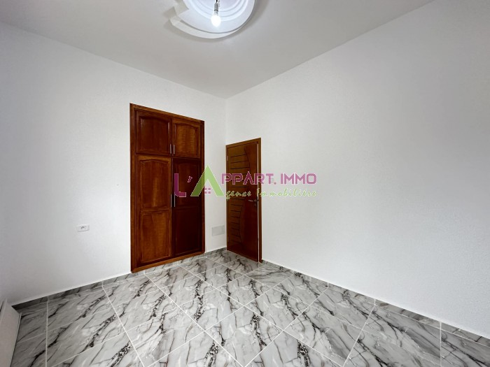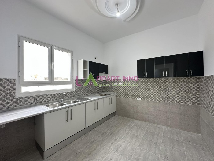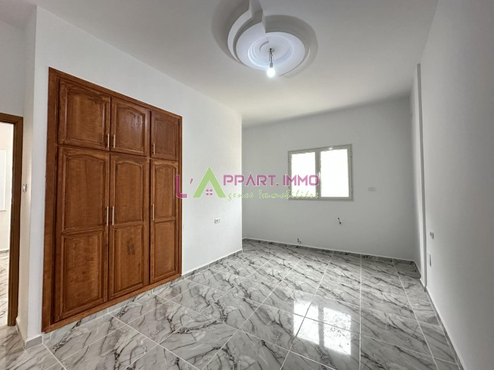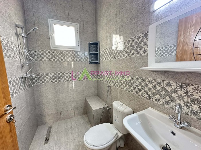 Cet étage de villa neuf se situe dans un quartier calme à Taher Sfar. Il se compose d'un salon, deux chambres à coucher avec placards partageant avec salle d'eau avec douche et une cuisine aménagée. Il est équipé par un chauffage central. Une entrée de voiture est disponible.