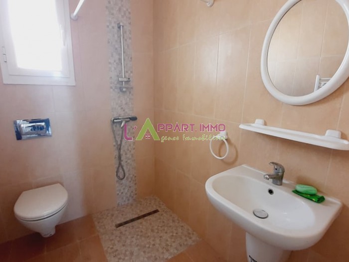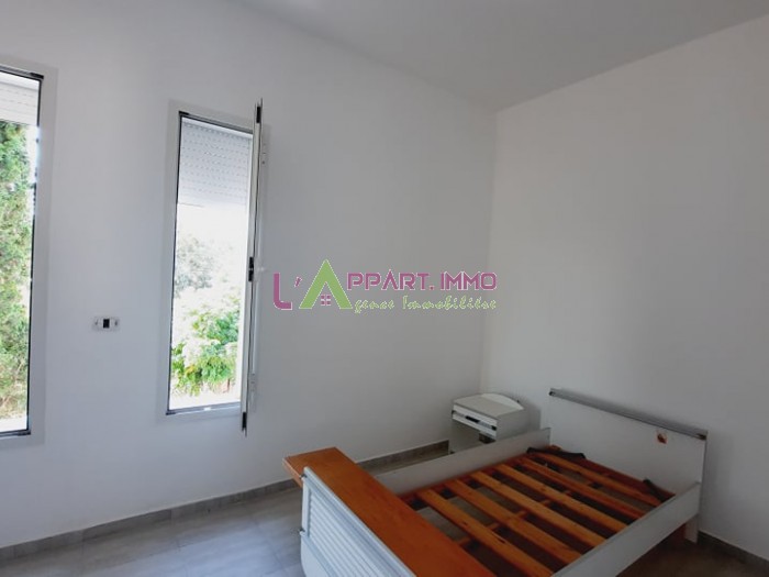Cet étage de villa avec une entrée indépendante se situe dans un quartier propre et calme à Megrine. Il se compose d'un salon, deux chambres à coucher partageant une salle d'eau avec douche. Quant à la cuisine elle est ouverte sur le salon . Il est équipé par un chauffage central. Une terrasse est disponible.