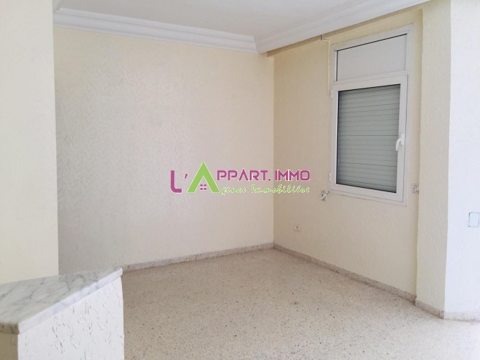 Cet appartement se situe dans une résidence gardée à Rades Cité Olympique. Il se compose d'un salon avec un balcon, deux chambres à coucher dont une avec un placard partageant une salle de bain, une cuisine aménagée qui s'ouvre sur un séchoir. Il est équipé par deux climatiseurs. Une place de parking est disponible.