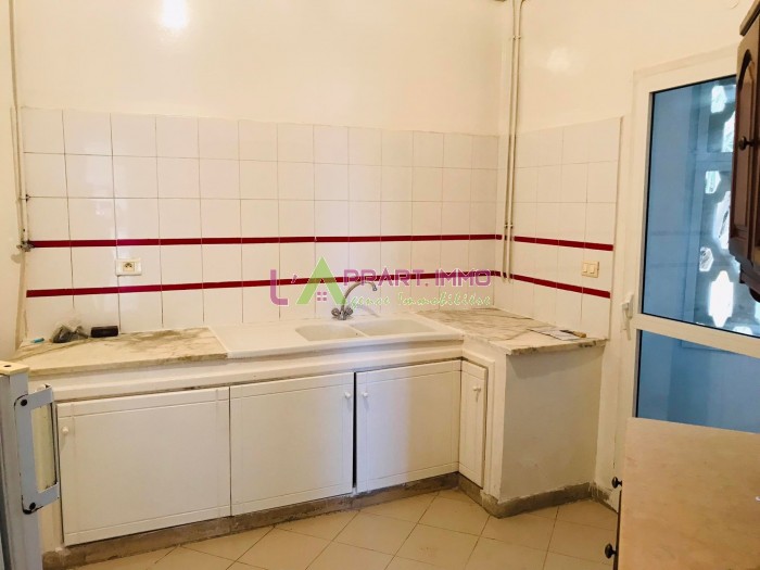 Cet appartement se situe au troisième étage dans une résidence gardée. Il se compose d'un salon avec un balcon, une cuisine aménagée avec accès à un séchoir. La partie nuit loge trois chambres à coucher partageant une salle de bain. Une salle d'eau est disponible. Il est équipé par deux climatiseurs. Une place de parking est disponible