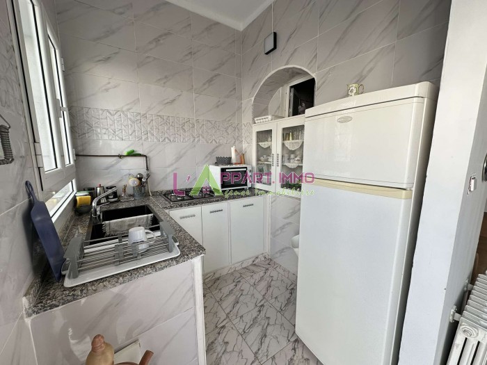 Cette maison meublé se situe dans un quartier calme et propre. Elle se compose d'un salon avec avec accès à une terrasse, une chambre à coucher, une salle d'eau avec douche et une cuisine aménagée et équipée. Elle est équipée par un chauffage central et un climatiseur.