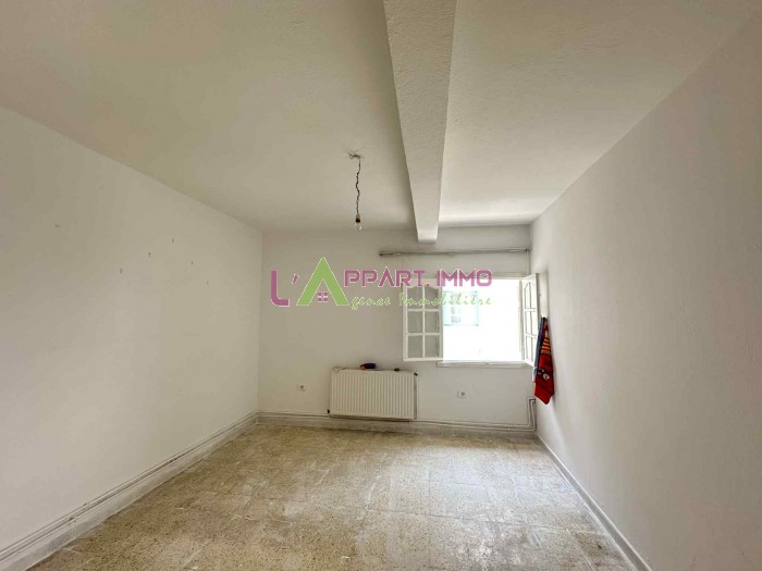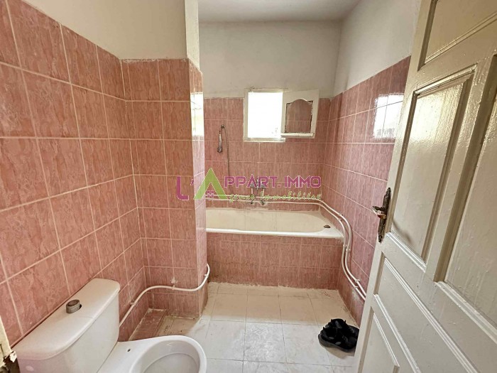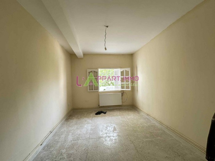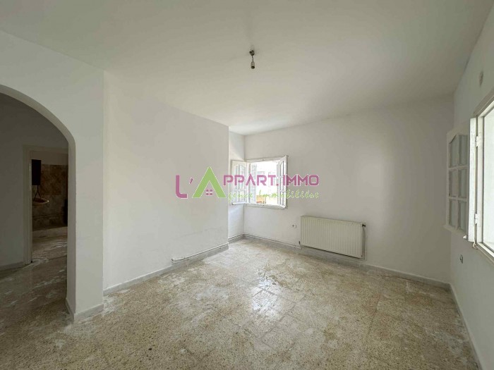 Cet étage de villa se situe dans un quartier calme à Ezzahra ville. Il se compose d'un salon, deux chambres à coucher partageant une salle de bain et une cuisine. Il est équipé par un chauffage central.