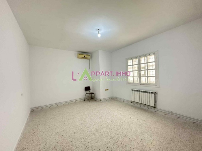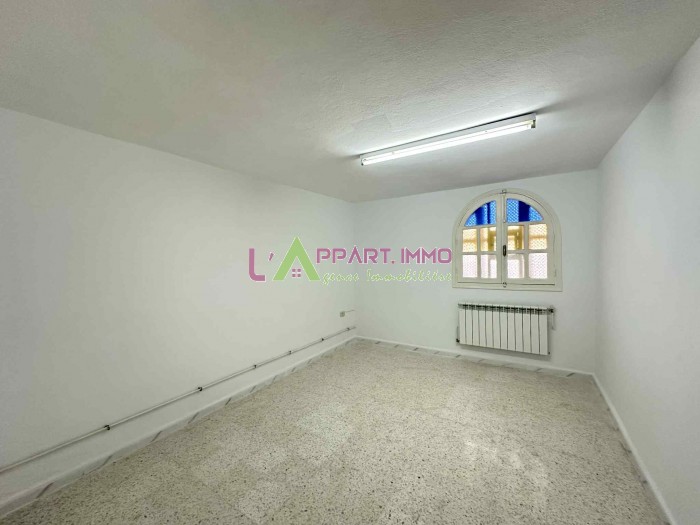 Cet étage de villa se situe dans un quartier calme et propre à Ezzahra ville. Il se compose d'un salon, quatre chambres à coucher dont deux avec placards partageant une salle de bain et une cuisine aménagée avec accès à un séchoir. Il est équipé par un chauffage central et deux climatiseurs.