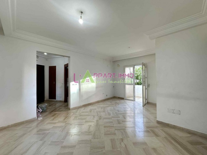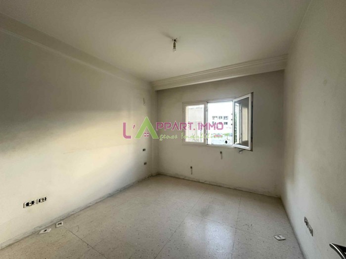 Cet appartement se situe dans une résidence gardée à Nouvelle Madina 3. Il se compose d'un salon avec un balcon, deux chambres à coucher dont une avec dressing partageant une salle de bain et une cuisine aménagée avec accès à un séchoir. Une place de parking est disponible.