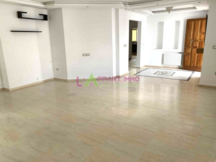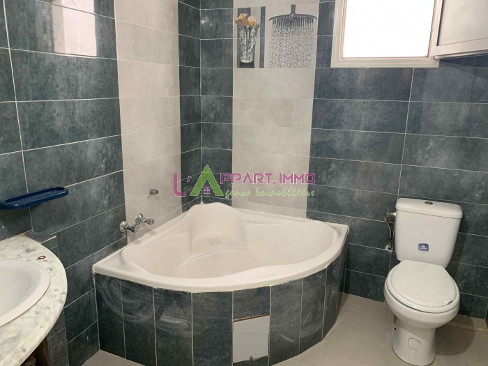 Cet étage de villa se situe dans un quartier calme et propre à Nouvelle Madina 3. Il se compose d'un salon, deux chambres à coucher dont une avec dressing partageant une salle de bain et une suite parentale avec une salle d'eau avec douche et une cuisine aménagée et équipée par une plaque chauffante et hotte. Il est équipé par un chauffage central et deux climatiseurs.