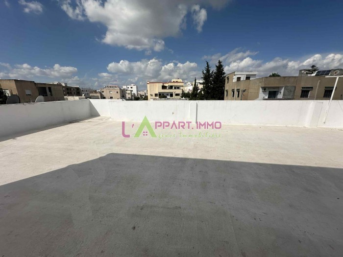 Cet étage de villa se situe dans un quartier calme à Nouvelle Médina 2 proche de toutes commodités. Il se compose d'un salon avec accès à une grande terrasse, deux chambres à coucher partageant une salle d'eau avec douche et une cuisine.