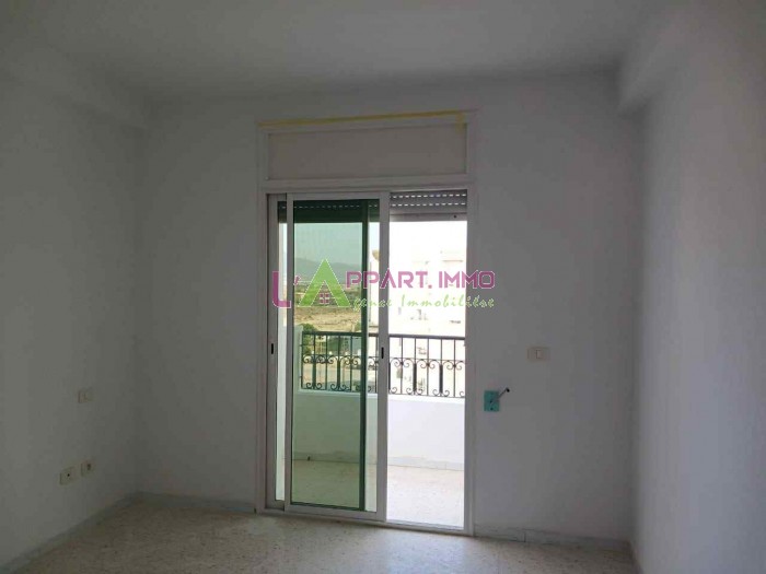 Cet appartement se situe dans une résidence gardée à Nouvelle Madina. Il se compose d'un salon avec un balcon, deux chambres à coucher partageant une salle de bain et une cuisine aménagée et équipée avec accès à un séchoir. Il est équipé par un chauffage central. Une place de parking est disponible.