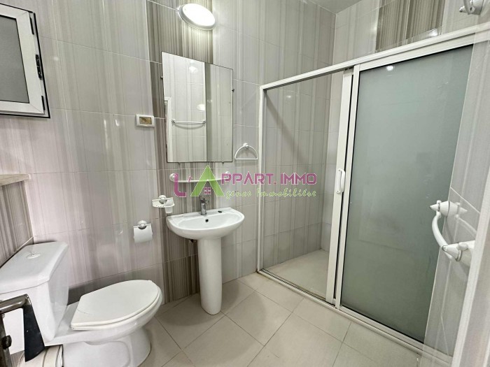 Ce rez de chaussée de villa se situe dans un quartier calme et propre à Boumhel. Il se compose d'un salon, deux chambres à coucher dont une suite parentale, une salle d'eau avec cabine de douche et une cuisine aménagée et équipée par une plaque et hotte. Il est équipé par un climatiseur.