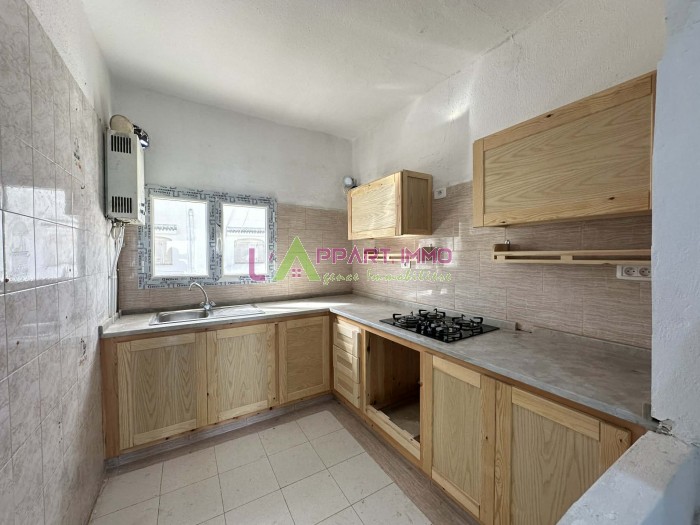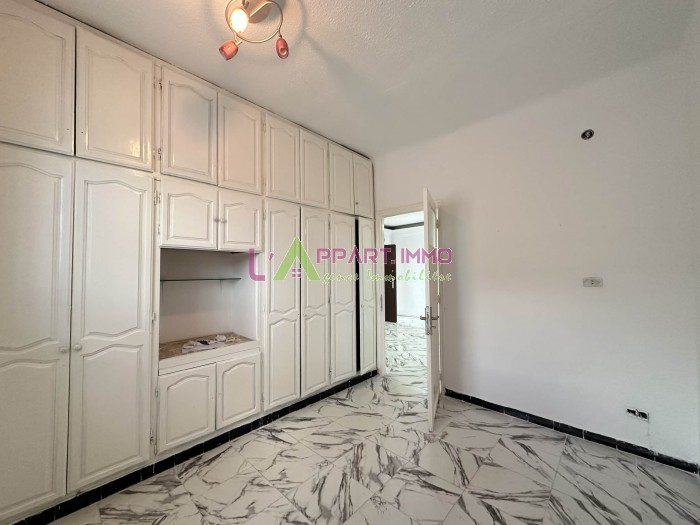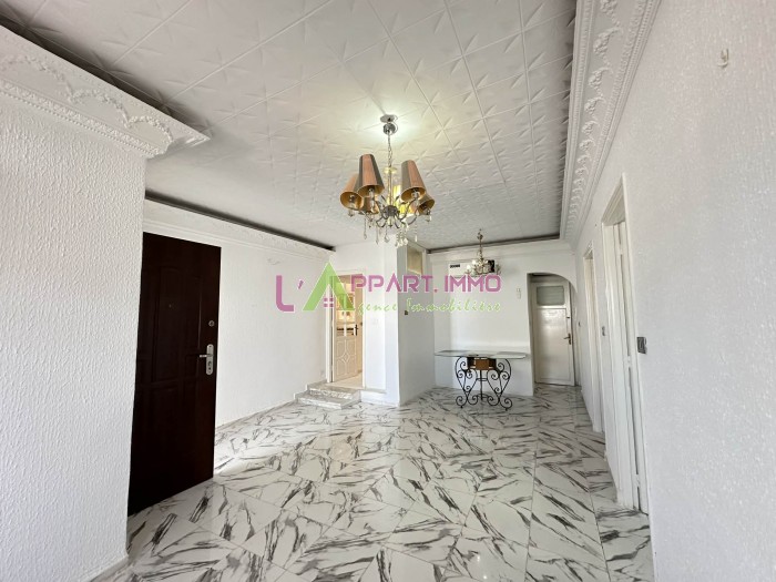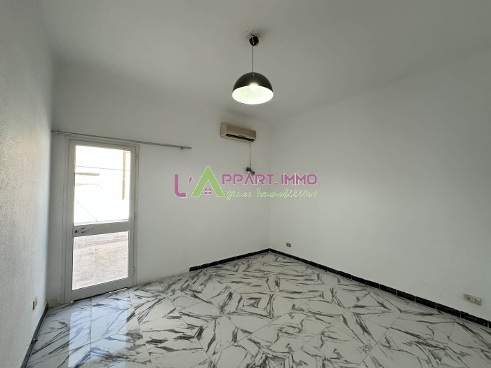 Cet étage de villa se situe dans un quartier calme à Ezzahra ville. Il se compose d'un salon, trois chambres à coucher dont une avec un dressing et une avec une terrasse partageant une salle d'eau avec douche et une cuisine aménagée et équipée par une plaque. Il est équipé par un climatiseur. Une entrée de voiture est disponible.