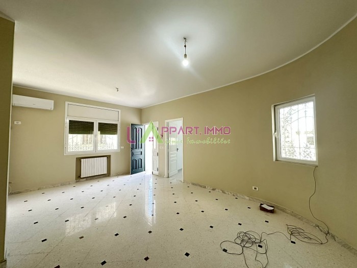 Cet étage de villa avec une entrée indépendante se situe dans un quartier calme à Rades Meliane. Il se compose d'un salon, deux chambres à coucher dont une avec placard partageant une salle de bain et une cuisine aménagée avec accès à un séchoir. Il est équipé par un chauffage central et un climatiseur. Une entrée de voiture est disponible.