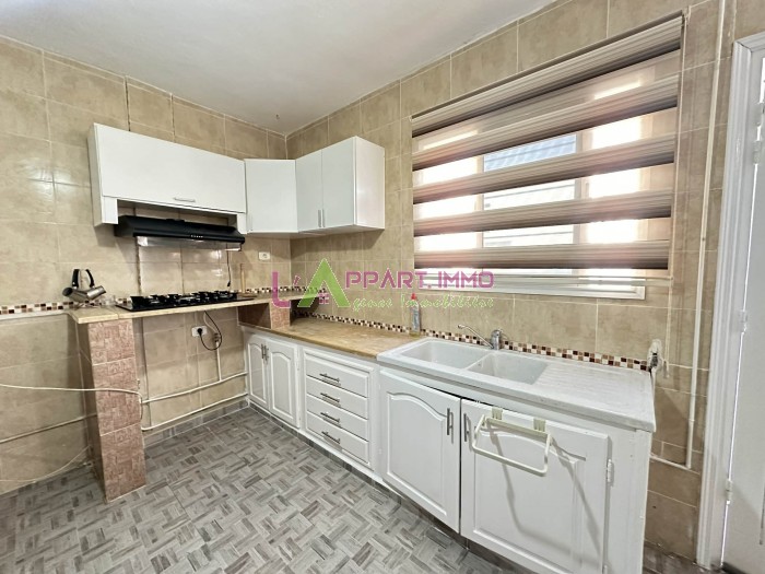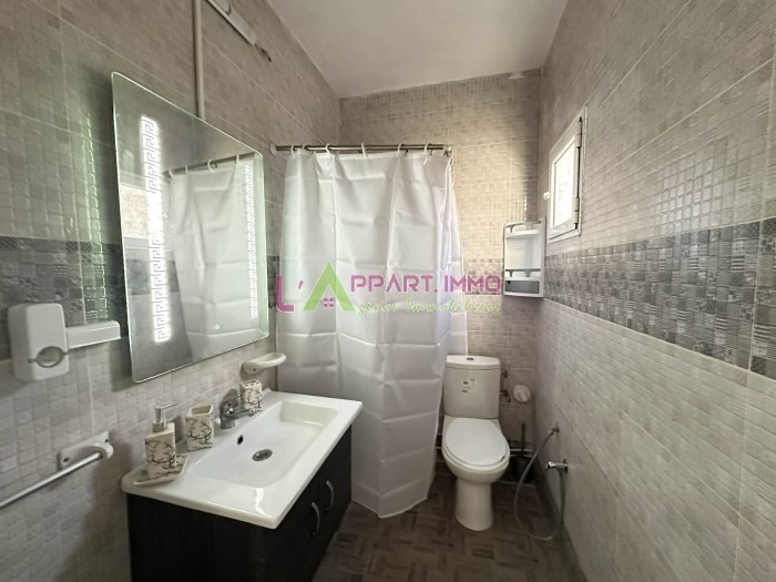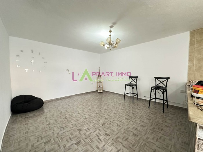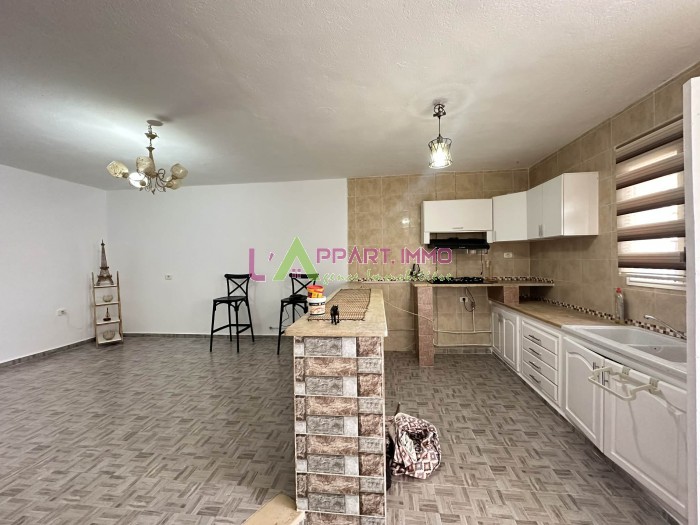 Cet étage de villa se situe dans une quartier calme à Boumhel. Il se compose d'un salon, une chambre à coucher. Quant à la cuisine elle est ouverte sur le salon et elle est équipée et aménagée par une plaque, hotte et une salle d'eau avec douche.