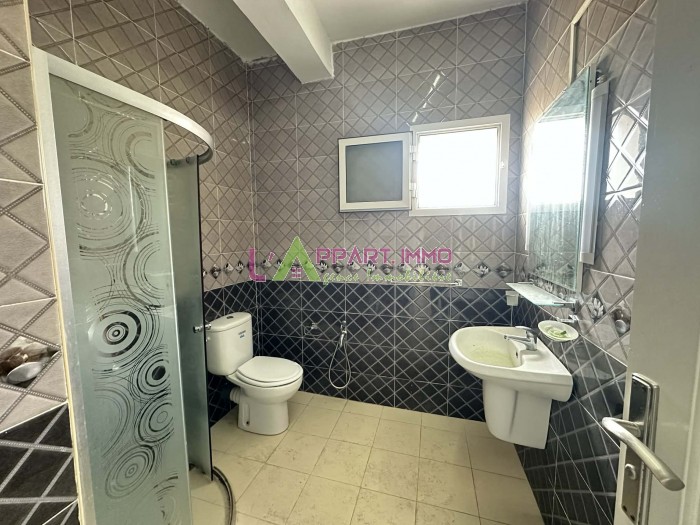 Cet appartement se situe dans un immeuble privé à Rades plage. Il se compose d'un salon avec un balcon, deux chambres à coucher dont une avec placard partageant une salle d'eau avec douche et une cuisine aménagée avec accès à un séchoir. Il est équipé par un chauffage central.