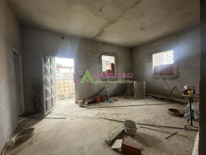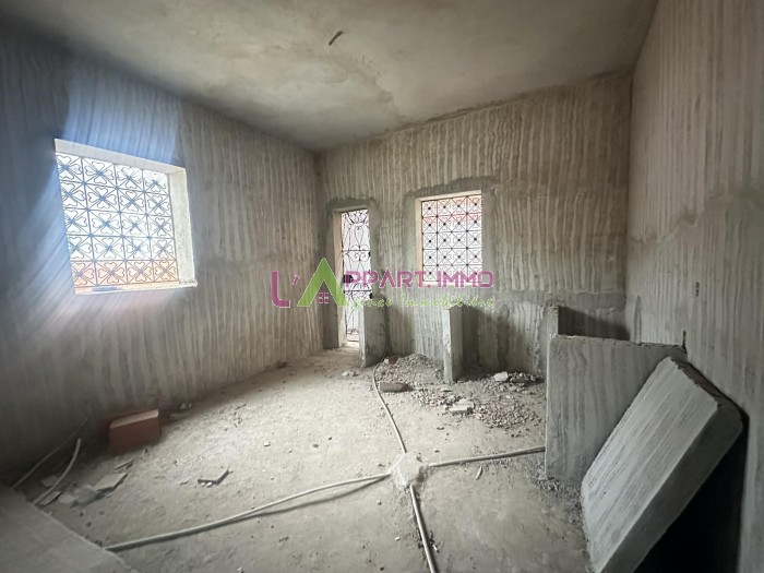 Cette maison dans un terrain de180m² de construction inachevée se situe dans un quartier calme. Elle se compose d'un salon, trois chambres à coucher, une salle d'eau avec douche et une cuisine avec accès à une terrasse. Elle dispose d'un titre individuel.