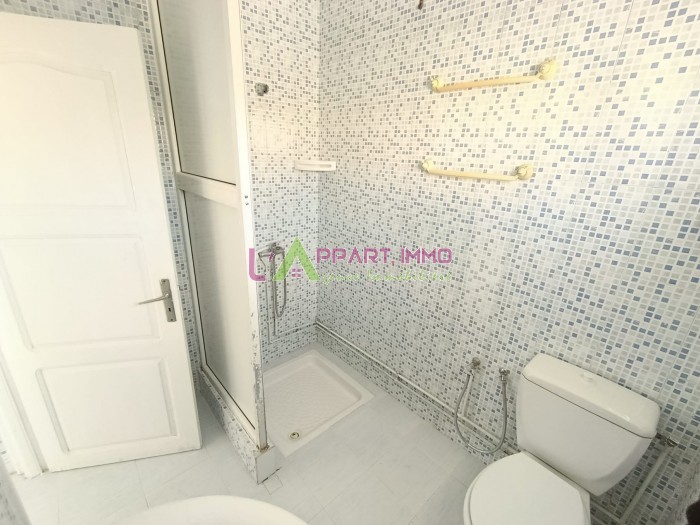 Cet étage de villa se situe dans un quartier calme à Rades plage. Il se compose d'un salon, quatre chambres à coucher dont une avec placard patageant une salle d'eau avec douche. Une cuisine aménagée et équipée par plaque, hotte et une salle d'eau pour les invités est disponible. Il est équipé par un chauffage central et un climatiseur. Une grande terrasse est disponible.