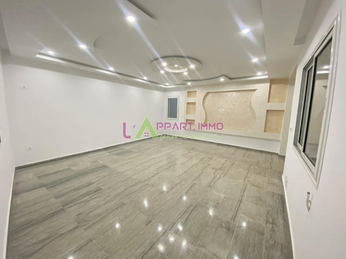 Ce Rez-de-chaussée de villa avec une entrée indépendante se situe dans un quartier calme à Nouvelle Madina 3. Il se compose d'un grand salon, trois chambres à coucher dont une suite parentale partageant une salle d'eau avec douche et une cuisine aménagée et équipée par une plaque et hotte aspirante avec accès à une terrasse.