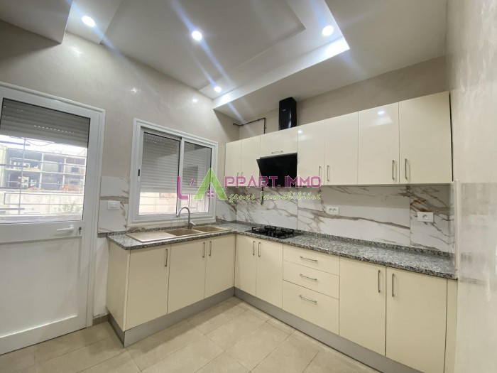 Cet appartement se situe dans un immeuble privé à Nouvelle Madina 3 coté hôpital Yasminette. Il se compose d'un salon avec accès à un balcon, une chambre à coucher, une salle d'eau avec douche et une cuisine aménagée et équipée par une plaque et hotte avec accès à un séchoir.