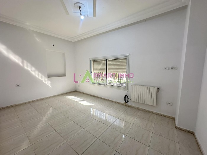 Cet appartement se situe dans un immeuble privé à Hammam Lif. Il se compose d'un salon avec un balcon, deux chambres à coucher partageant une salle d'eau avec douche et une cuisine aménagée et équipée par une plaque et four. Il est équipé par un chauffage central. Une place de parking est disponible.