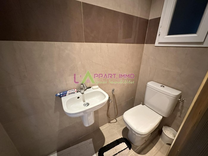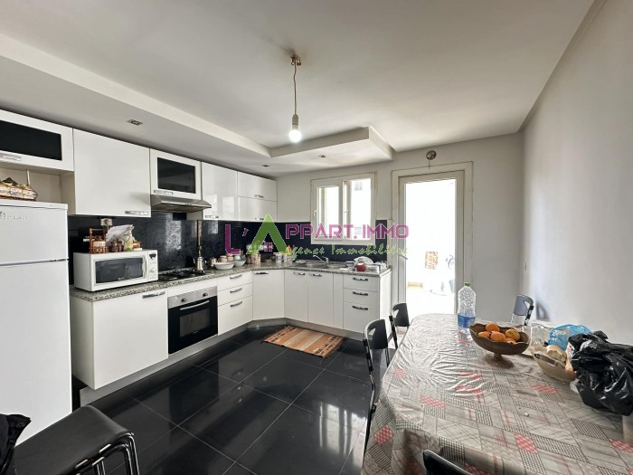 Cet appartement se situe dans une résidence gardée et propre à Boumhel. Il se compose d'un grand salon avec un balcon, une cuisine aménagée et équipée par plaque, hotte et four avec accès à un séchoir. Une salle d’eau pour les invités est disponible. Quant au compartiment nuit, il abrite trois chambres à coucher partageant une salle de bain. Il est équipé par chauffage central. Une place de parking sous-sol est disponible.