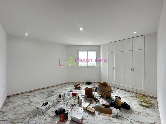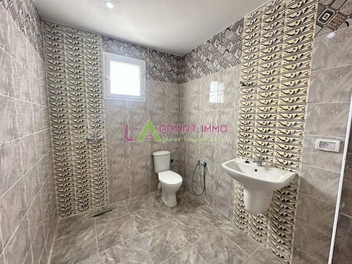 Cet appartement se situe dans un immeuble privé à Rades plage. Il se compose d'un salon avec un balcon, deux chambres à coucher dont une avec placard partageant une salle d'eau avec douche et une cuisine aménagée avec accès à un séchoir.