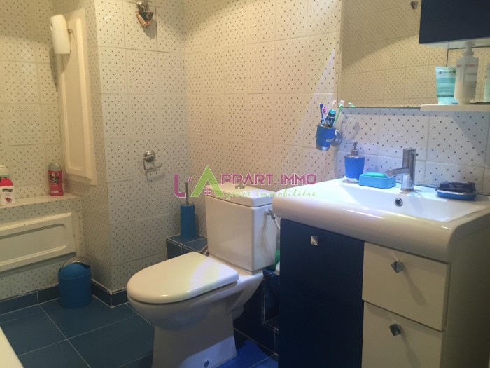 Cet appartement se situe dans un une résidence propre et proche de toutes commodités. Il se compose d'un salon avec balcon, une cuisine aménagée. La partie nuit loge deux chambres à coucher qui partagent une salle de bain commune. Cet appartement est équipé par un chauffage central et un climatiseur.