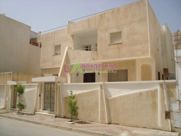 Cette demeure, bâti sur trois niveaux est située dans un quartier calme et résidentiel et prés de toutes les commodités. Une terrasse qui entoure cette villa nous mène à l'entrée. La partie jour est composée d'un hall donnant sur un double salon et deux chambres; un séjour et une suite avec salle de douche, une salle d'eau pour les invitée et une cuisine moderne bien aménagée qui dispose d'un coin de repas. Des escaliers nous mènent au compartiment nuit qui est composé d'un hall avec accès à un balcon, une suite parentale, trois chambres à coucher chacune avec dressing et une salle de bain commune. Au rez-de-jardin, on trouve un salon,deux chambres à coucher, deux cuisines et deux salle d'eau avec douche. Un garage de voiture peut aisément contenir deux voitures.