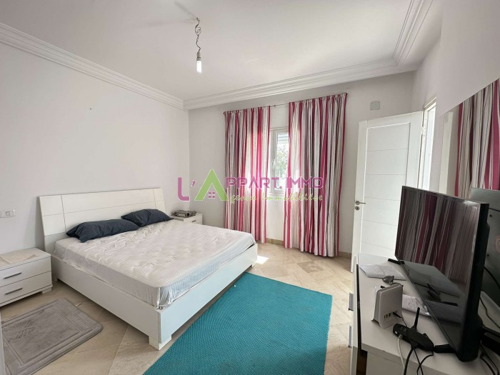 Cet appartement se situe dans une résidence gardée et propre. Il se compose d'un salon, une chambre à coucher avec un balcon. Quant à la cuisine elle est ouverte sur le salon et elle est équipée et aménagée avec des éléments de rangements, plaque, hotte et four et une salle de bain. Il est équipé par un chauffage central et un climatiseur. Une place de parking est disponible.