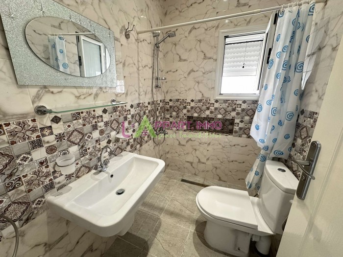 Ce studio neuf se situe dans un quartier calme et propre à Ezzahra. Il se compose d'un salon, une chambre à coucher, une salle d'eau avec douche et une cuisine aménagée et équipée par une plaque de cuisson, une hotte aspirante et un four avec accès à une terrasse.