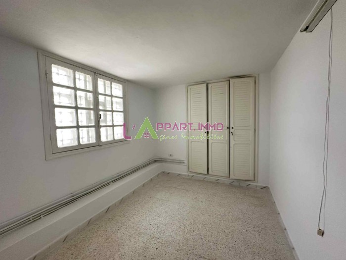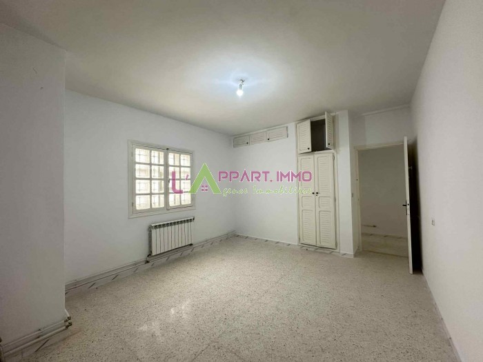 Cet étage de villa se situe dans un quartier calme et propre à Ezzahra ville. Il se compose d'un salon, quatre chambres à coucher dont deux avec placards partageant une salle de bain et une cuisine aménagée avec accès à un séchoir. Il est équipé par un chauffage central et deux climatiseurs.