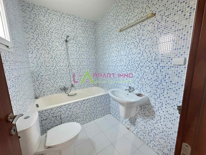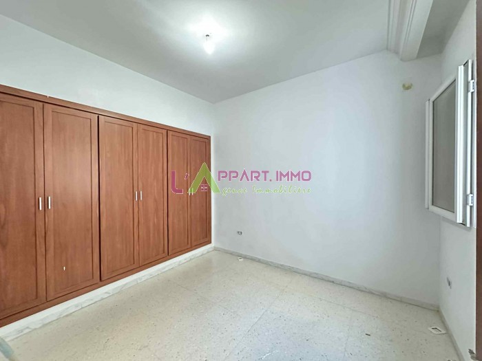 Cet appartement se situe dans une résidence gardée à Nouvelle Madina 3. Il se compose d'un salon avec un balcon, deux chambres à coucher dont une avec dressing partageant une salle de bain et une cuisine aménagée avec accès à un séchoir. Une place de parking est disponible.