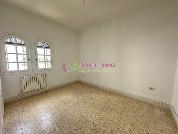 Cet étage de villa se situe dans un quartier calme et propre à ezzahra ville. Il se compose d'un salon, deux chambres à coucher partageant une salle de bain et une cuisine aménagée. Il est équipé par un chauffage central.