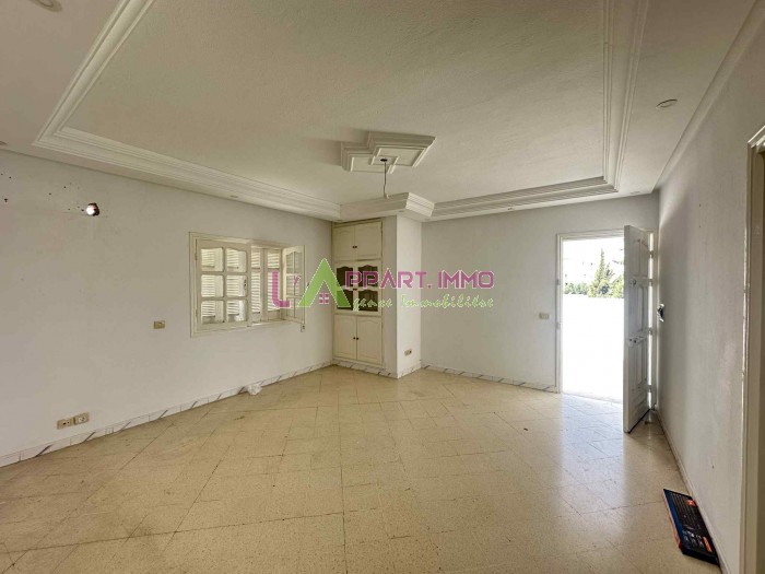 Cet étage de villa se situe dans un quartier calme à Nouvelle Médina 2 proche de toutes commodités. Il se compose d'un salon avec accès à une grande terrasse, deux chambres à coucher partageant une salle d'eau avec douche et une cuisine.