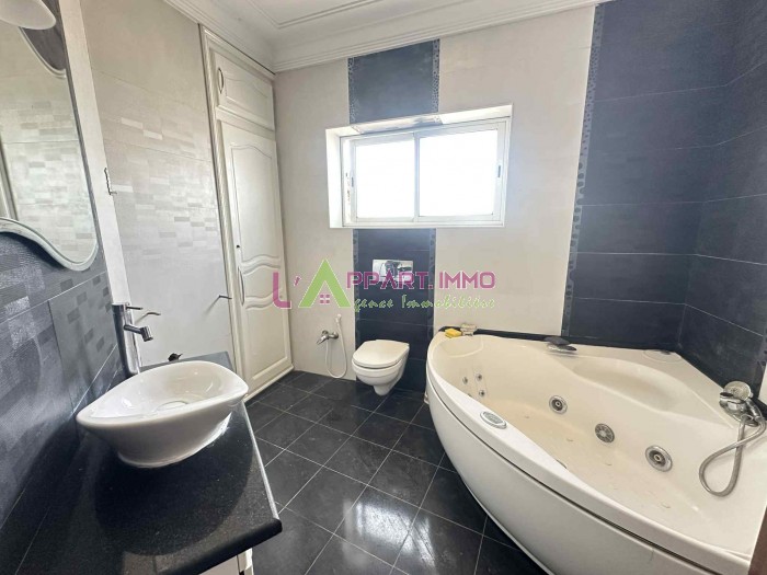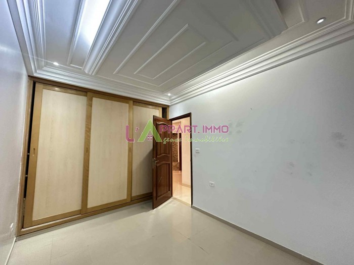 Cet étage de villa se situe dans un quartier calme à Mégrine Riadh. Il se compose d'un grand salon, deux chambres à coucher dont une avec un dressing partageant une salle de bain et une cuisine aménagée et équipée par une plaque, hotte et four.