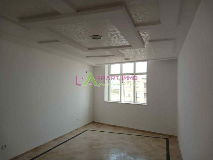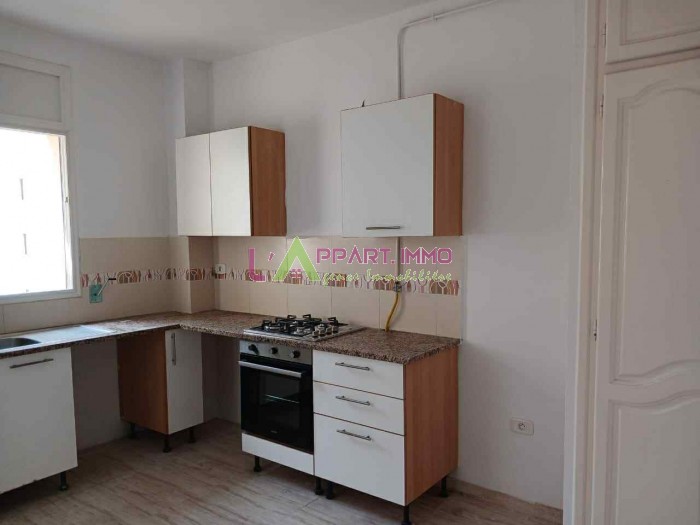 Cet appartement se situe dans une résidence gardée à Nouvelle Madina. Il se compose d'un salon avec un balcon, deux chambres à coucher partageant une salle de bain et une cuisine aménagée et équipée avec accès à un séchoir. Il est équipé par un chauffage central. Une place de parking est disponible.