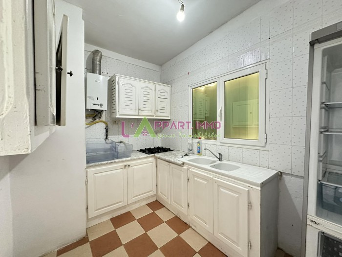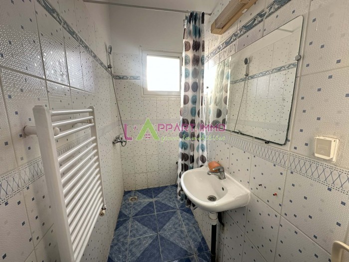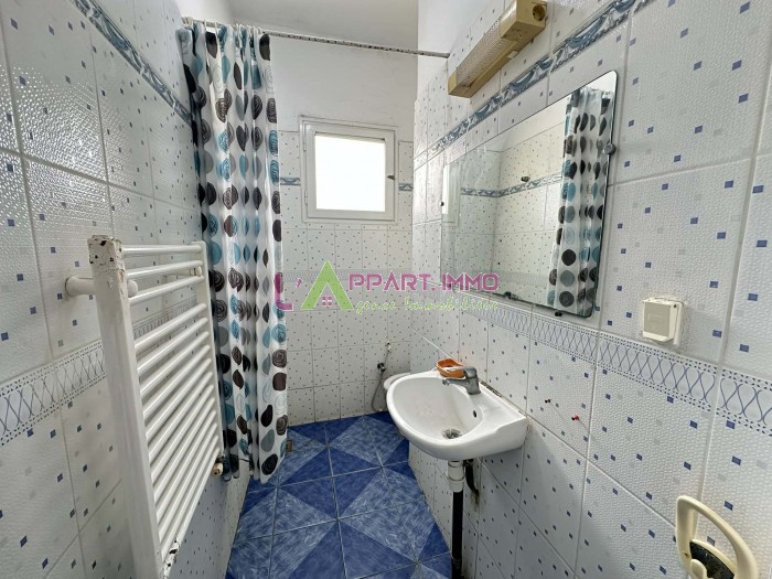 Cet étage de villa se situe dans une quartier calme à Hammam Chatt. Il se compose d'un salon avec accès à un balcon, deux chambre à coucher dont une avec placard partageant une salle d'eau avec douche et une cuisine aménagée. Il est équipé par un chauffage central et un climatiseur.