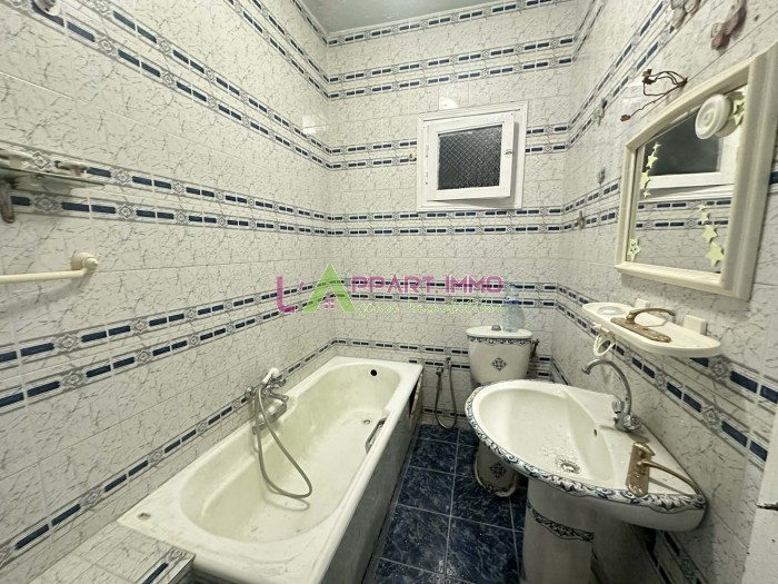 Cet étage de villa se situe dans une quartier calme à Ezzahra coté salle de sport sparta. Il se compose d'un salon avec accès à un balcon, deux chambre à coucher partageant une salle de bain et une cuisine aménagée.