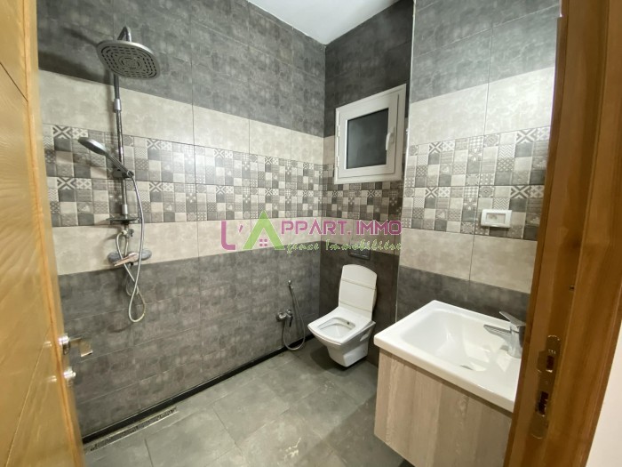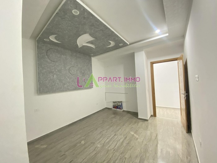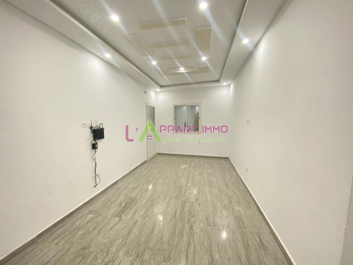 Cet appartement se situe dans un immeuble privé à Nouvelle Madina 3 coté hôpital Yasminette. Il se compose d'un salon avec accès à un balcon, une chambre à coucher, une salle d'eau avec douche et une cuisine aménagée et équipée par une plaque et hotte avec accès à un séchoir.