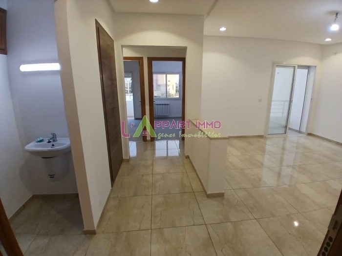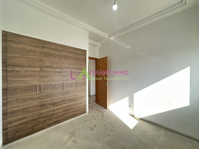 Cet appartement neuf se situe dans une résidence gardée et propre à Mourouj 6. Il se compose d'un salon avec accès à un balcon, une cuisine aménagée et équipée par une plaque chauffante, hotte aspirante complétée par un séchoir et une salle d'eau pour les invités est disponible. Quant au compartiment nuit, il abrite trois chambres à coucher dont deux avec dressings partageant une salle de bain. Il est équipé par chauffage central. Une place de parking sous-sol est disponible.