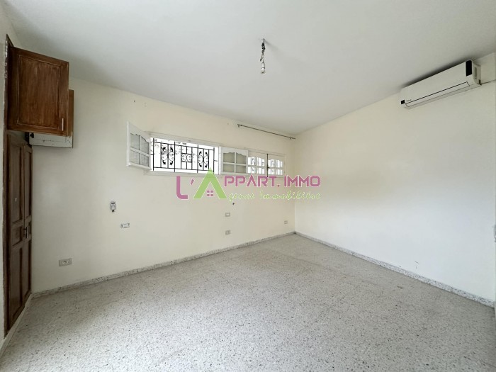 Cet étage de villa se situe dans une quartier calme à Boumhel. Il se compose d'un salon, deux chambre à coucher dont une avec placard partageant une salle d'eau avec cabine de douche et une cuisine aménagée et équipée par plaque et hotte. Il est équipé par un climatiseur. Une terrasse est disponible.