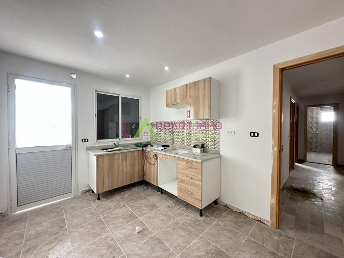 Cet appartement se situe dans un immeuble privé à Rades plage. Il se compose d'un salon avec un balcon, deux chambres à coucher dont une avec placard partageant une salle d'eau avec douche et une cuisine aménagée avec accès à un séchoir.