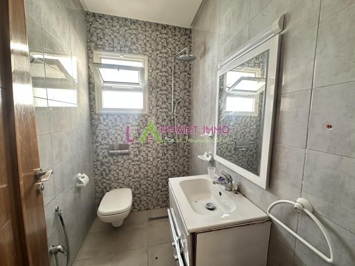 Cet étage de villa se situe dans un quartier calme et propre à Rades plage. Il se compose d'un grand salon, une chambre à coucher, une salle d'eau avec douche et une cuisine aménagée et équipée par plaque. Il est équipé par un climatiseur. Une entrée de voiture est disponible.